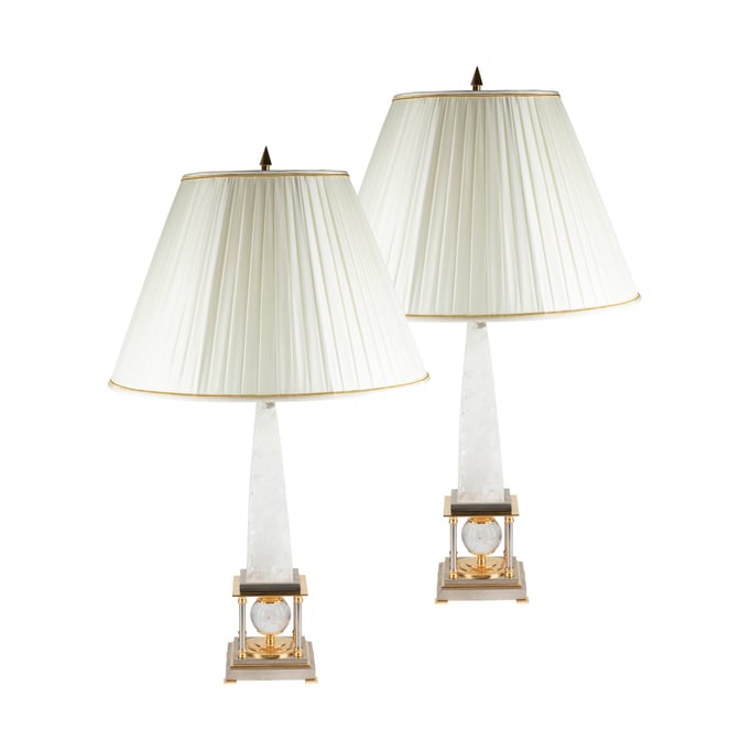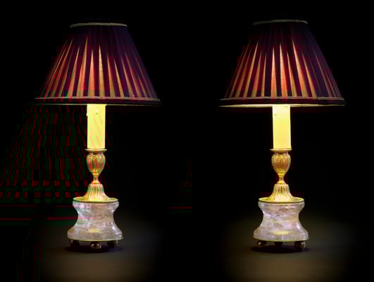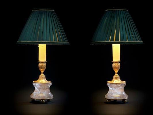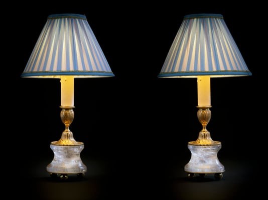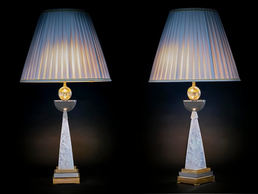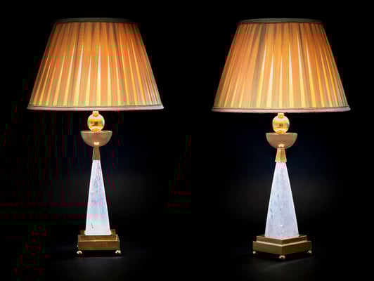 ROCK CRYSTAL and LAPIS LAZULI pair of lamps.
