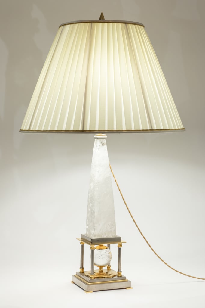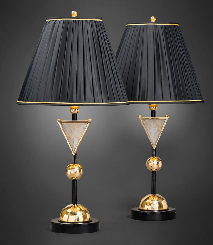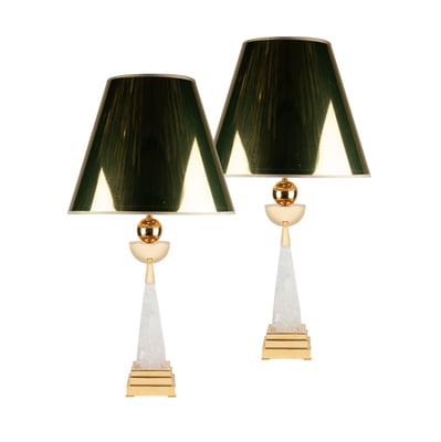 Pair of rock crystal and malachite lamps by Alexandre VOSSION;